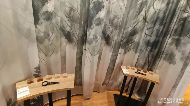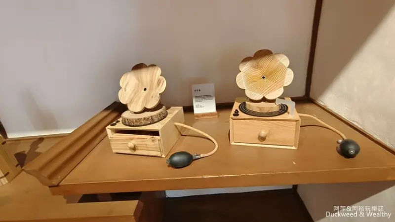 嗅覺體驗區有兩台留香機,按壓黑色小氣囊就可以聞到木頭香,
