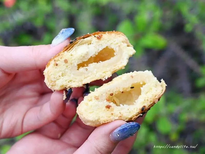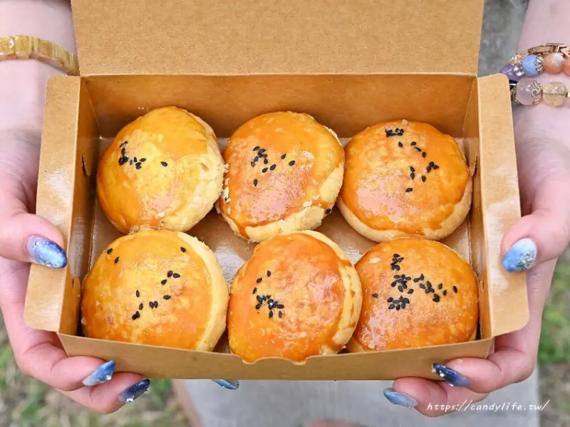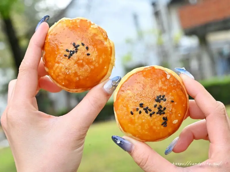 有著台中最強的鹽之花甜燒餅之稱,今年更是榮獲2025年台中十大伴手禮特賞好禮獎,嚴選日本麵粉、紐西蘭無水奶油製成的外餅皮,內餡的糖餡是採用上白糖及AOP奶油製作而成,烤焙前再撒上黑芝麻及法國鹽之花增添香氣