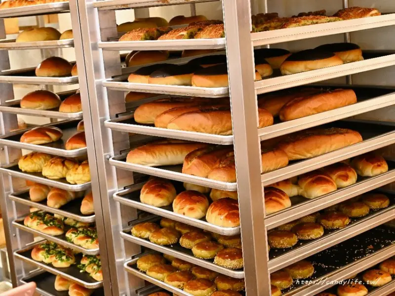 糖糖這天中午就先來卡位,新鮮麵包剛出爐,闆娘都還來不及上架,是說一般麵包店都是下午兩三點麵包才會陸續出爐,晴天菓子中午來就有許多麵包種類可以挑選,不少上班族們中午都會來挖寶