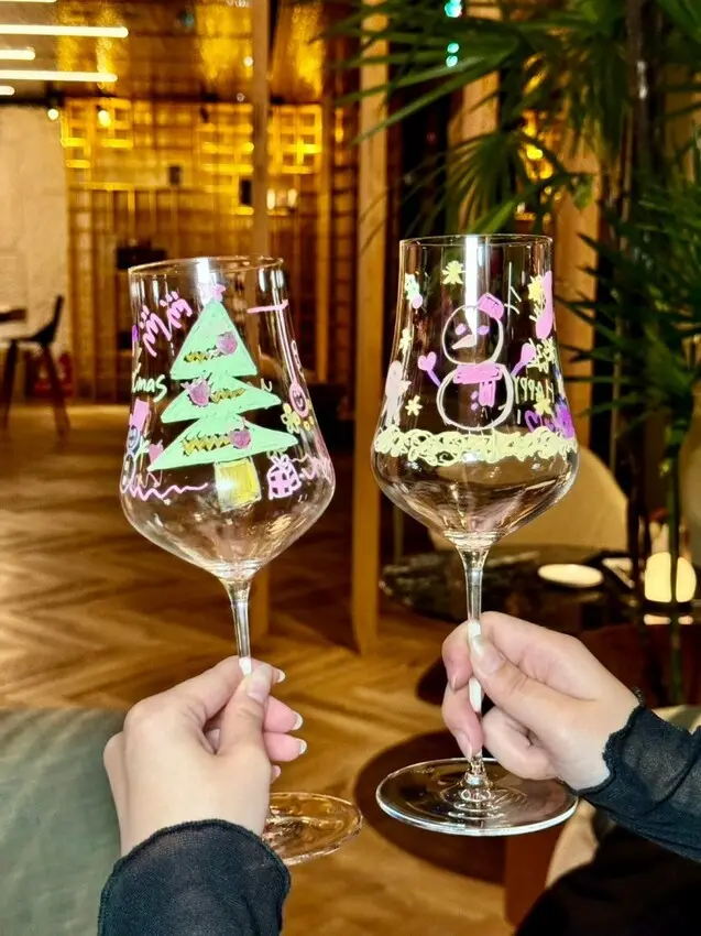 來如詩還有很有趣的詩人畫杯活動,讓你在等餐時不無聊~可與姊妹或好友來場小小創意PK~繪製屬於自己的紅酒杯超有儀式感