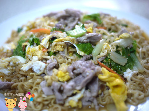 這是他們的炒泡麵,熊其實吃得很飽,所以這道餐是另外一個人吃的,熊有小嚐一口,她們的炒泡麵,偏濕潤的,跟鴻美炒泡麵是兩種不同口感的料理,味道對於重口味的熊而言,是恰到好處的,所以習慣吃清淡的人或許會覺得略重吧XD。