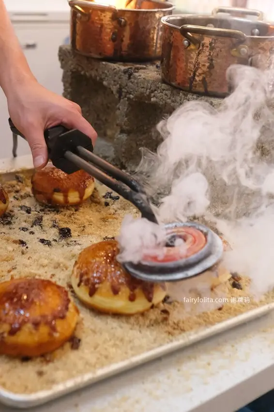 大火之後就冒出了陣陣白煙,這時候甜甜圈就做好囉!