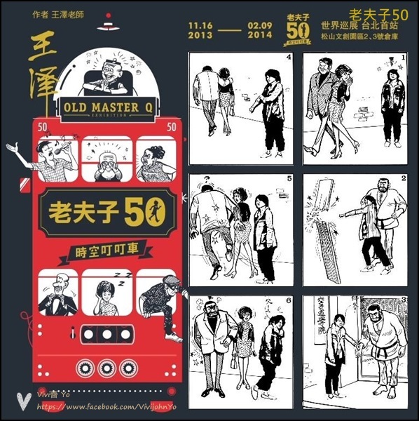 於2013.11.16 開展的<老夫子50>老夫子50>將和他的好朋友大番薯,一起開著「時光叮叮車」載著大家共同穿梭過去與未來,展開一段天馬行空、幽默古怪的奇妙旅程,