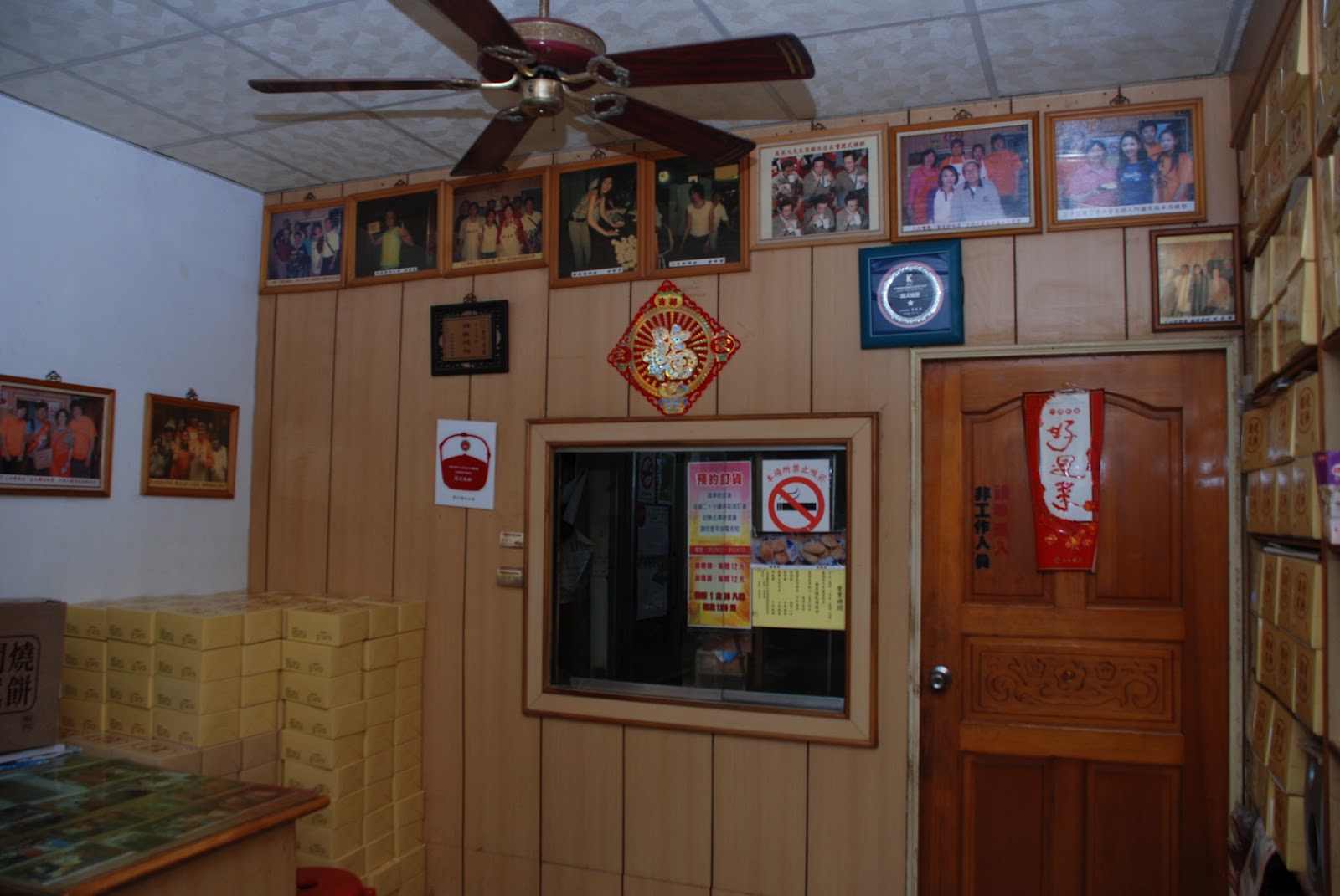 走到店內時,一眼望去,挖賽!整間店的角落與牆壁旁的櫃子,塞滿了許多裝燒餅盒子,嚇到了嗎?呵呵,基本上這家的燒餅很有名氣,想要買燒餅最好提前預約在過來,有時候即使預約了也不一定可以現拿,等上兩三天都是常有的事情(>熊媽<曾經預約後要等五天...。>