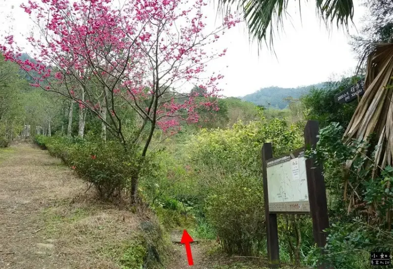 在進入步道之前就沿路看到盛開櫻花,粉粉的很美,