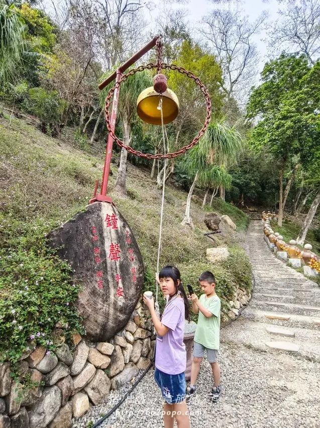 步道走到底有涼亭可以稍作休息,敲敲平安鐘能獲得幸福也能獲得財富。
