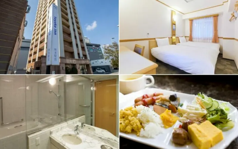 這間東橫INN從熊本站走出來不到1分鐘就能抵達,不論搭新幹線或巴士都很方便。房間小巧但乾淨舒適,還有多種房型可選,對於預算有限又想住得安心的旅客來說,是很高CP值的選擇。飯店每天早上提供免費自助早餐,還有咖啡和茶可以無限取用,簡單又實惠!