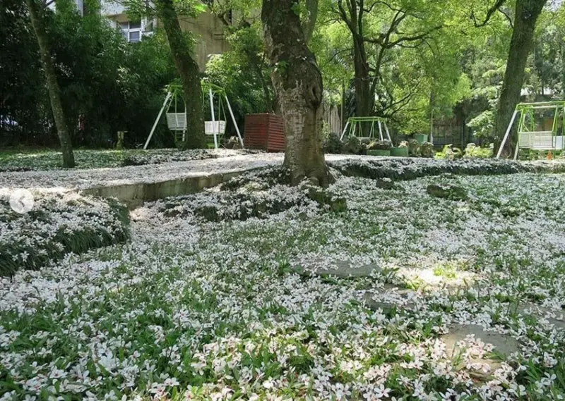 暨南大學的校園腹地廣大,四季都盛開著著絕美的花草綠樹,風景優美,是賞花的好去處。暨南大學的花季,不僅因三月的櫻花而聞名,接棒的更是四、五月,純白清新的油桐花及淺粉色的花旗木。每到油桐花及花旗木花季時,純白花朵相繼綻放,景致富麗,加上暨大的校園廣闊,拍起來更像是在森林的仙女一樣。假日之時,除了賞花之外,也可以帶著野餐墊到校園的大草原野餐放鬆,天氣好的時候,還能遠眺合歡、奇萊大山喔。