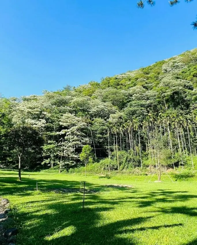 水里益則坑有著林蔭、水圳,位置在日月潭的慈恩塔後山及民和村(拔社埔)之間,是炎炎夏日戲水、避暑的瀑布勝地。到了油桐花季時,這裡更成為賞油桐花的小秘境。從山腳往山上走,蓊鬱蒼翠的山林上,開滿了如雪片般的叢叢油桐,看起來浪漫又迷人,可以沿路邊走邊欣賞油桐花,加上溪水帶來的涼爽感受,是個假日建行的好去處。而位於附近的「阿喜桂花園」,是個免費的秘境景點,還能在整片草地上,輕鬆愜意的欣賞這般美景,感受悠悠飄落的落花載滿水里客庄情懷~