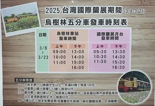 往返「蘭展展區」及「烏樹林休閒園區」,