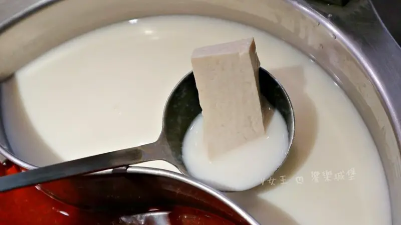 麻辣鍋裡面有滿滿的豆腐跟鴨血,滷得超入味超好吃,吃不夠還可以跟服務人員說,他們會再幫你加喔! 這個香純牛奶鍋,聽說是店家用新鮮牛奶加上奶粉調配出來的,裡面也有加豆腐。
