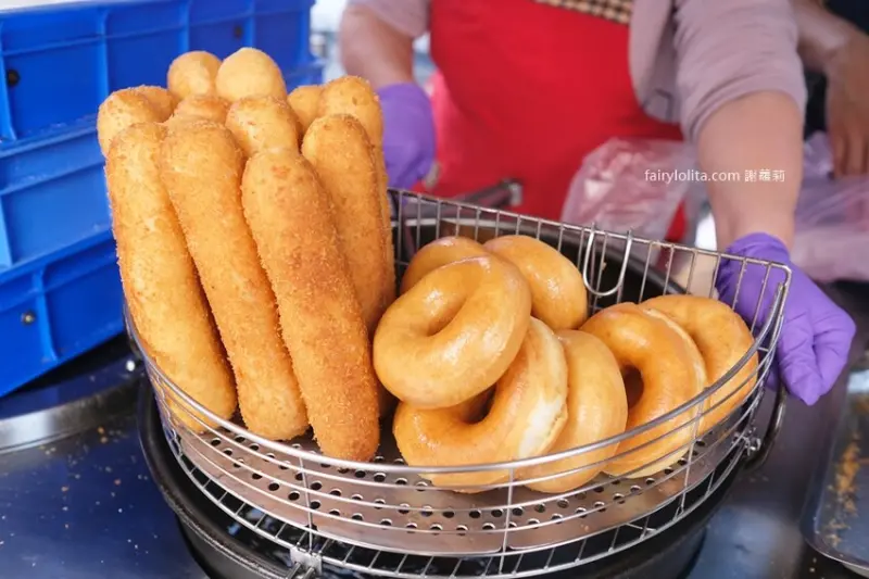隱密一攤躲在夜市口,如果沒有發現排隊人潮,還當真走過路過就錯過,從下午3~4開始營業人潮就從來不間斷,不少在地人也蠻推薦他們家的甜甜圈跟營養三明治,銅板價一個就可以吃得到,多加10元還可以多一片迷人的牽絲起司片。