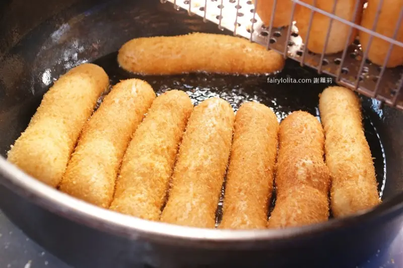 小小一條下去油炸,瞬間就變成大熱狗似的,就像細細的油條、一入炸鍋馬上變成澎脹的大油條。