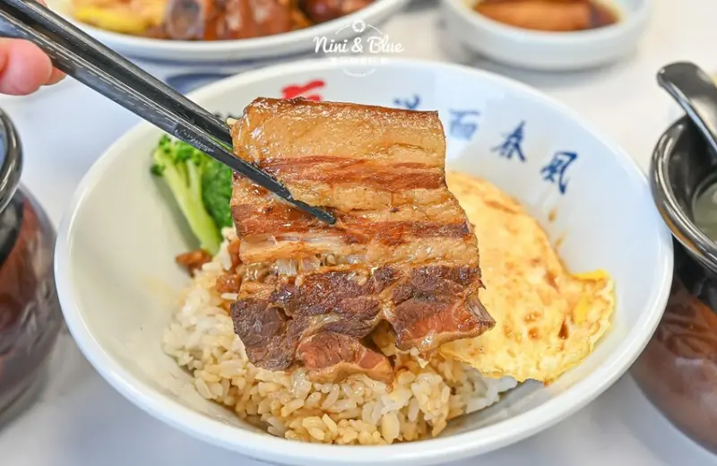 漂亮方塊狀的三層五花肉浸泡在油亮鹹香的滷汁,很誘人口水ㄟ~