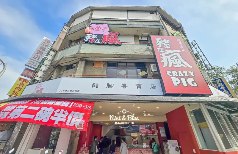 潮港城全新直營品牌-豬在瘋豬腳專賣店,就在台中北區健行路上。賣的是台灣傳統小吃美食,有豬腳飯、腿庫飯、爌肉飯、豬腳麵線、瓦罐煨湯、黑白切、小菜,從中午營業到凌晨,不管是正餐、下午茶或是宵夜都吃得到。除了現場吃之外,還有冷凍的豬腳即享包,遇到閏年送豬腳給長輩亦可以選擇豬腳禮盒,方便、美味又大方。