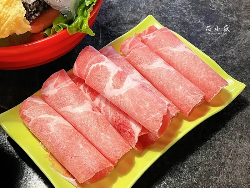 蔬盈市場火鍋有現點現切的肉片,產地直送的海鮮,小份100公克,大份300公克自由選擇份量搭配。