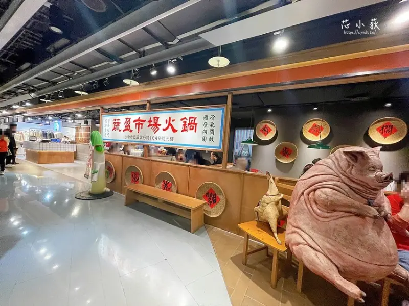蔬盈市場火鍋位在台中市西區健行路上,台中金典綠園道商場三樓,店外觀就蠻有市場古早味風格的感覺,之前就有注意到這家(可能因為旁邊的豬豬),但始終沒進去吃過,這次吃了馬上列入自己愛吃的名單中,是會想帶朋友再去吃的口袋名單。