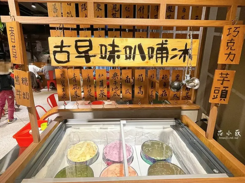 飲品只有兩種選擇,阿里山茶園原片烏龍茶、古早味冬瓜茶,一個不甜、一個甜的這樣也足夠。冰淇淋就有6種口味,沒了跟服務生說也馬上補。