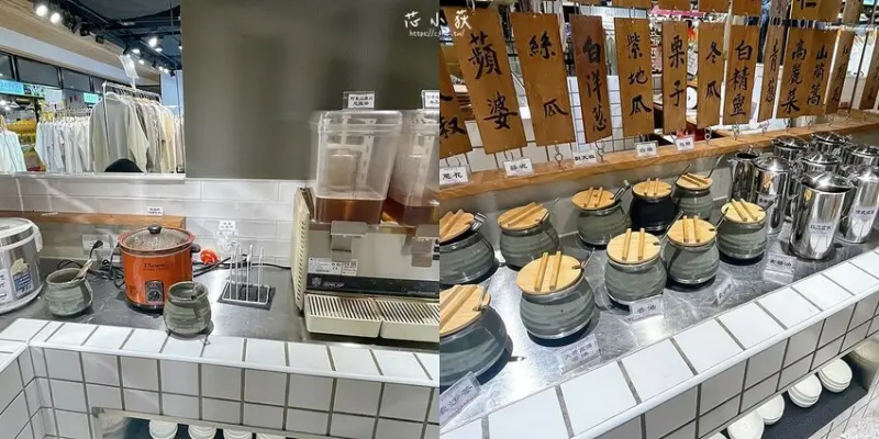 連自助吧的吧檯設計都很市場風耶,蔬盈市場火鍋的自助吧擁有滿滿的4-50種新鮮蔬菜,其中菇類有12種,常見不常見的都有,葉菜類10-12種,還有新鮮的手工板豆腐、品牌水洗雞蛋、獨家配方香蘭米飯、阿嬤口味豆干魯雜肉、阿里山茶園原片烏龍茶、古早味冬瓜茶、杜老爺冰淇淋、還有火鍋料等食材通通全部吃到飽。