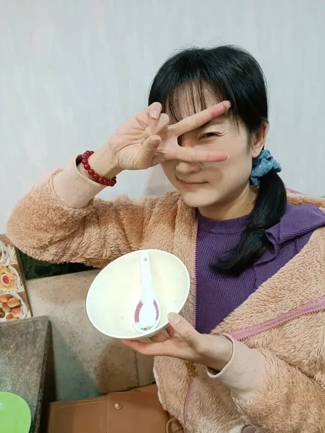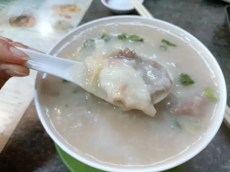 粥品幾乎已經看不到米粒了,粥品上面灑上蔥花和薑絲好香呀!