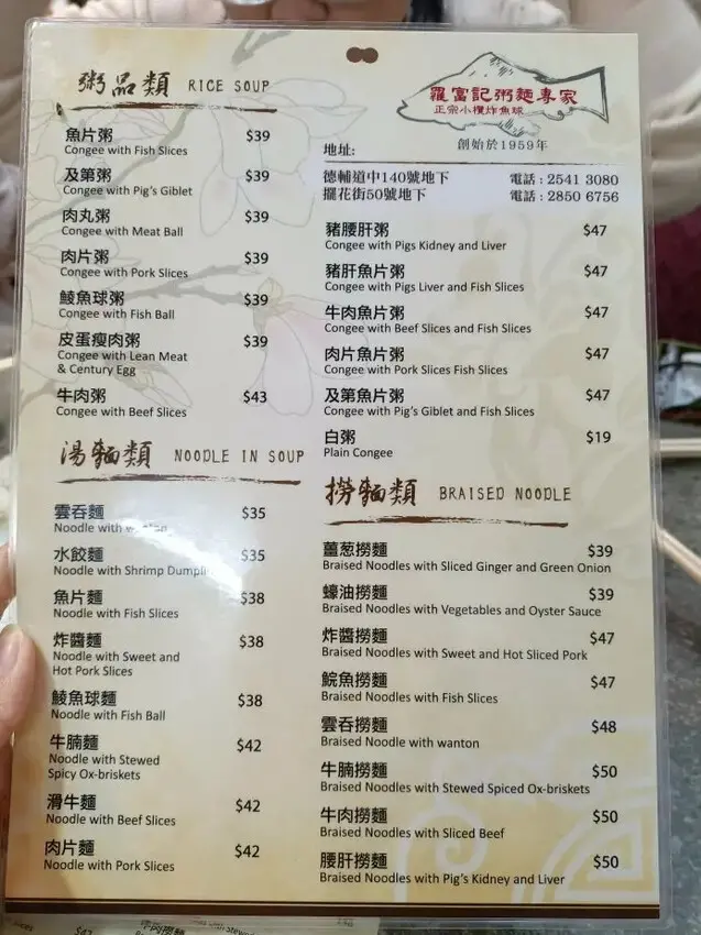 羅富記粥麵專家店址:香港中環擺花街擺花街48-50號G/F