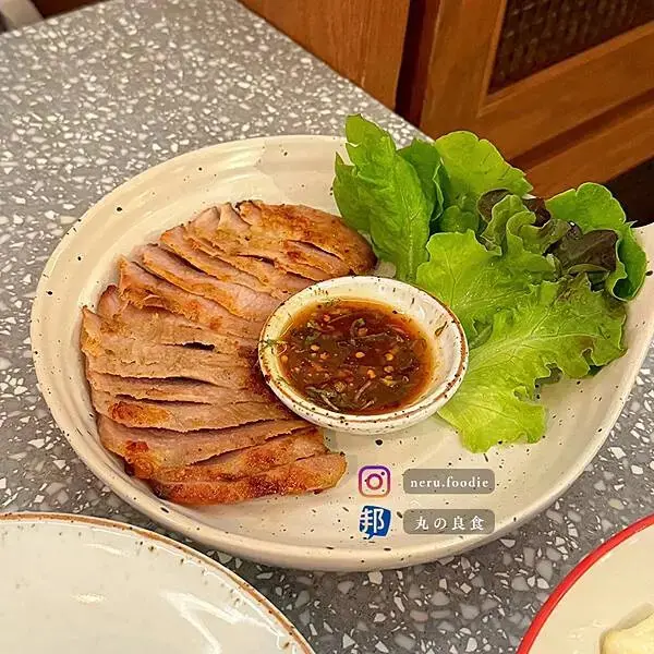 Massaman chicken cur ฿285|Stir-fried minced po ฿135|Grilled pork neck ฿175|Stir-fried cabbage ฿165|Steamed rice ฿25