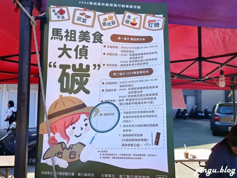 連江縣交通旅遊局為推廣觀光,於園遊會購買在地美食並完成合影,前往攤位進行有獎問答,即可兌換「大偵碳的筷樂牽掛」環保筷套小禮物~