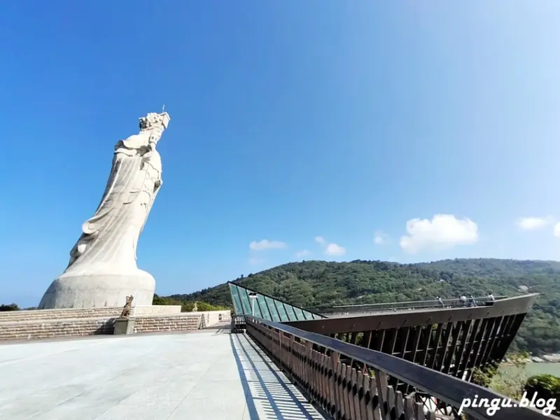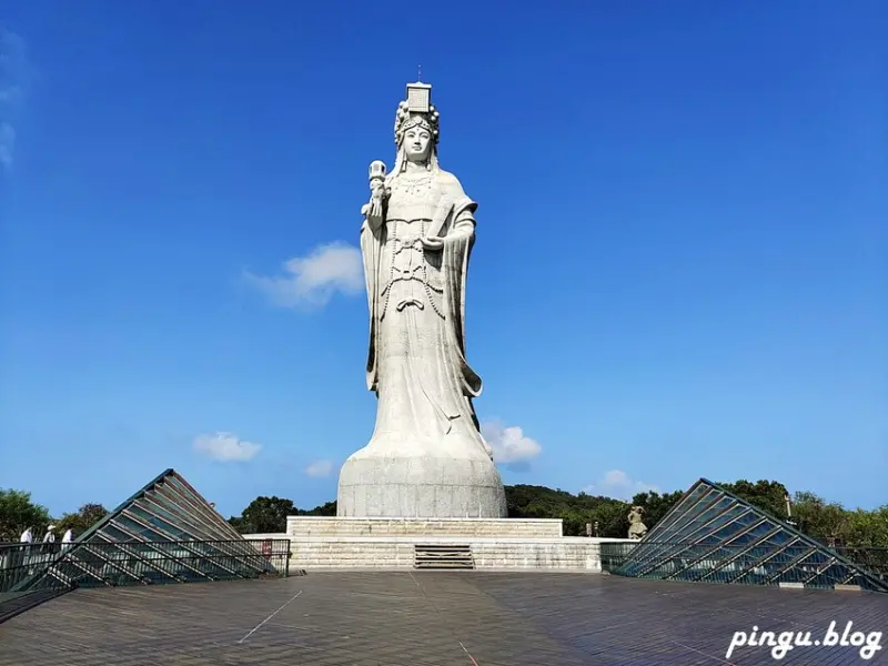 媽祖巨神像是一座由365塊花崗岩雕刻而成的宏偉雕像,象徵著一年365天的平安祝福。巨神像的高度為28.8公尺,象徵馬祖四鄉五島的總面積,而加了避雷針更是高達29.6公尺,剛好是馬祖填海後的總面積,如此巧合讓人不禁讚嘆媽祖的神力~