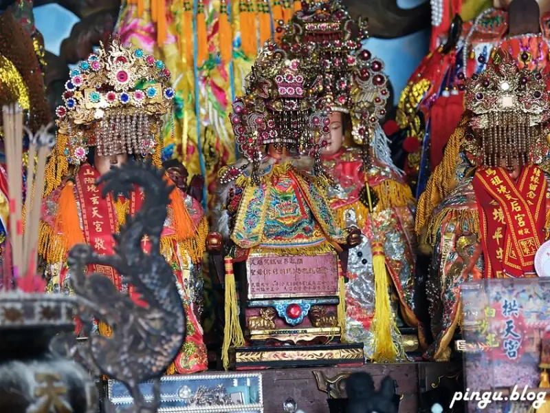 各尊媽祖金身各有特色,有全身金色媽祖,還有粉面、黑面、金面媽祖,粉面媽祖象徵媽祖28歲飛升成仙的青春面容,黑面媽祖的意義有兩種說法,一種是取媽祖公正凶悍、救苦救難的形象;另一種是信眾長期奉祀薰黑而成,又稱「香煙媽」,金面媽祖象徵媽祖成仙得道、金光閃閃~來一趟媽祖昇天祭通通都可以看到呢~