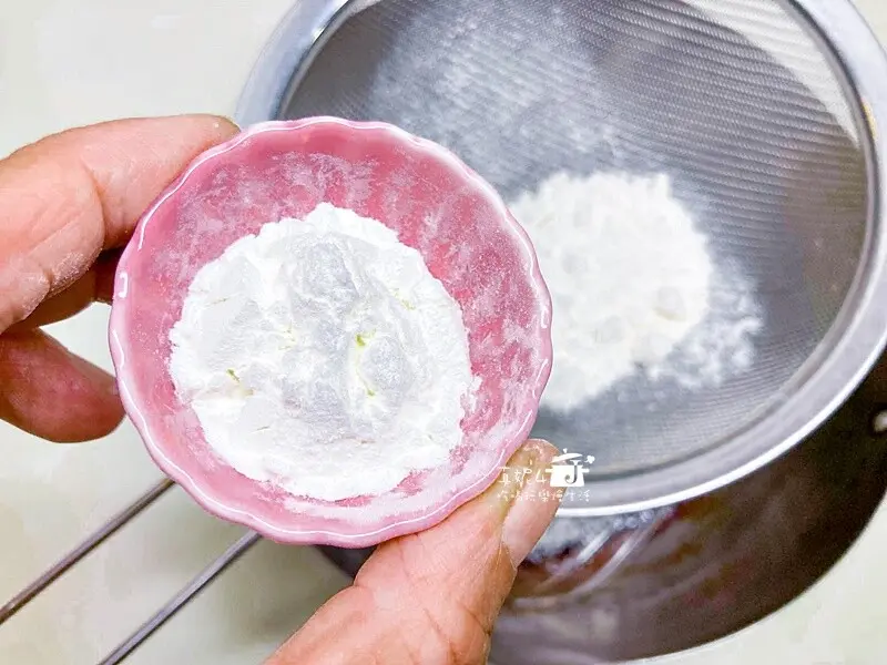 加過篩的低筋麵粉/玉米粉/鹽,拌勻