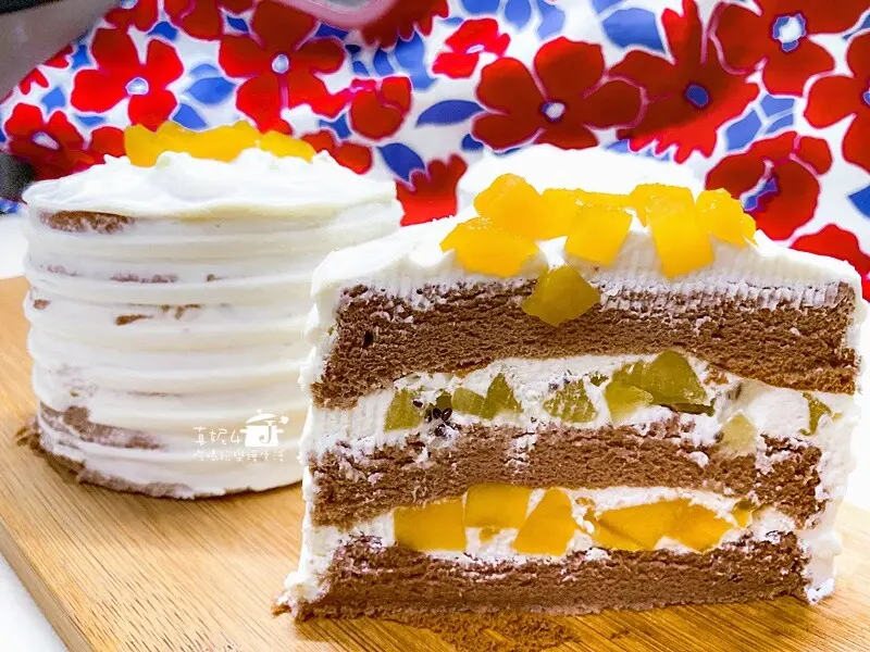 4吋水果夾心蛋糕,我用3顆雞蛋做3個4吋3層夾心蛋糕,夾餡鮮奶油和奇異果和芒果果丁