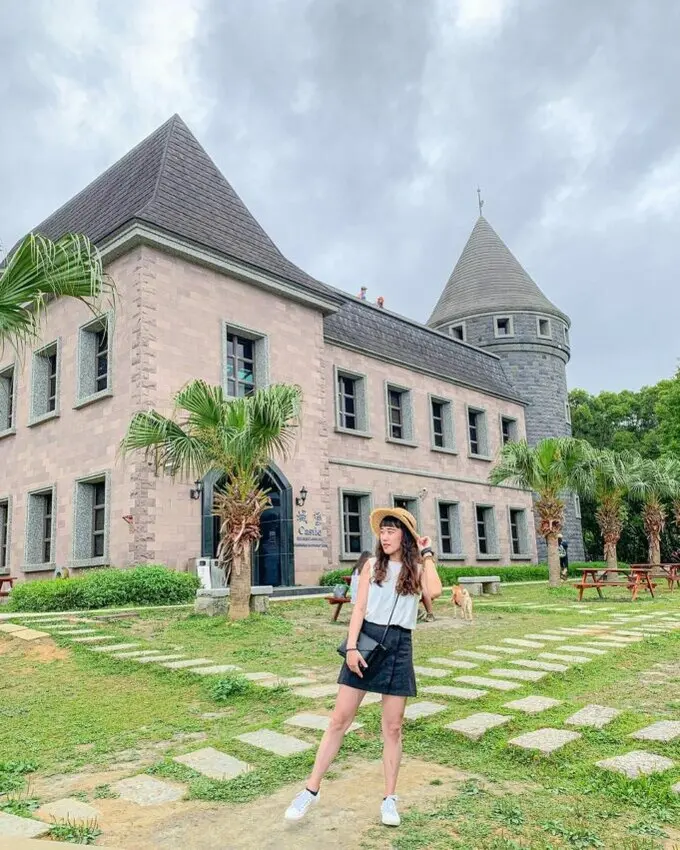 搭配著藍天以及翠綠的草地,在這裡拍照彷彿到了國外。咖啡城堡分為一館與二館,兩者的建築風格給人差不多的感覺,而不同的地方是一館的頂樓開放讓遊客上去參觀,能遠眺龜山島,看看美麗的風景,人數相較起來也比較多,因此想避開人潮的話也可以考慮到二館。