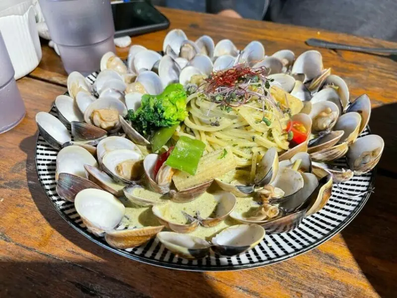 頭城流水森林是近期網路爆紅的餐廳,浮誇的蛤蜊意大利麵,用爆量的蛤蜊在盤中開出一朵花,是每一桌都必點的人氣菜品;流水森林筒蝦使用低溫油封的煮法,淋上檸檬,蝦肉保有彈性又開胃,也是店裡的招牌之一。
