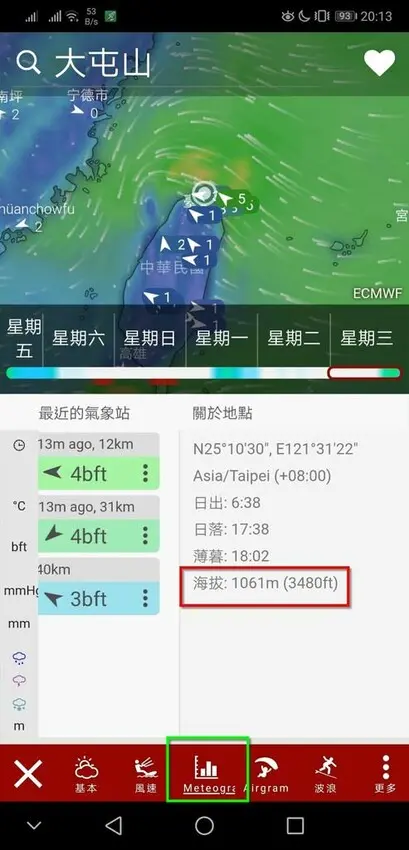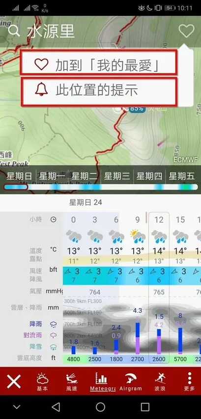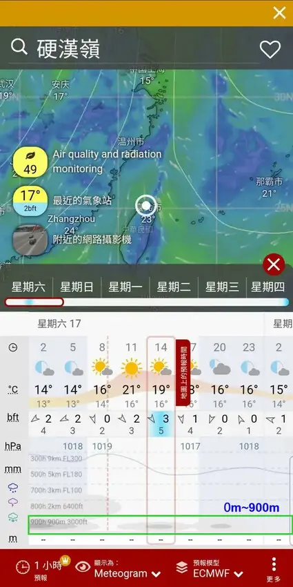 可觀看未來幾天的預報(天候、溫度、風力、雲高等等)