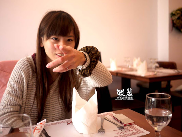 這傢伙很欠揍,我在拍室內場景時,一直伸出手在搗亂,我問她說,你是想上鏡頭喔!結果她竟然叫我不要拍場景,拍他的手的比較好看啦...真是...冏,剛好拍到一張比較機車的樣子XD!難得小聚,PO一張墊高被抓包的圖,那時候還跟花枝說,來偷偷墊高腳好了,不然他好高,結果店家連腳都拍近來了>"<....冏...傷心了
