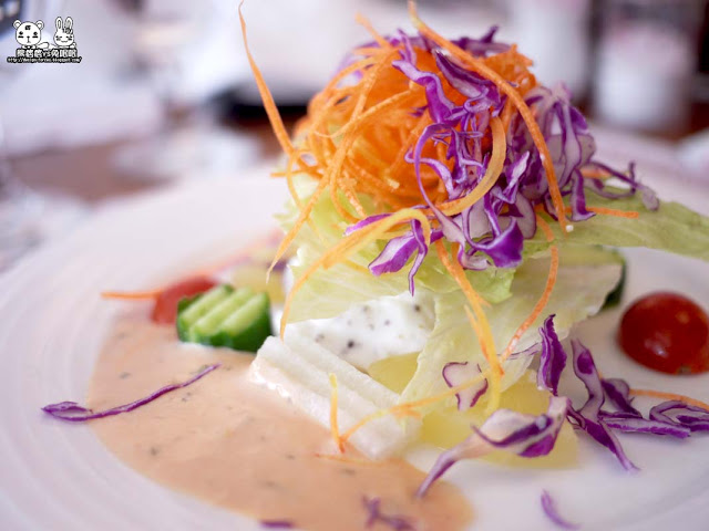 沙拉的菜很新鮮,吃起來很有脆度,蕃茄也不會很酸,鳳梨是甜甜的,配上沾醬的口感很不賴,還蠻喜歡這道菜的。