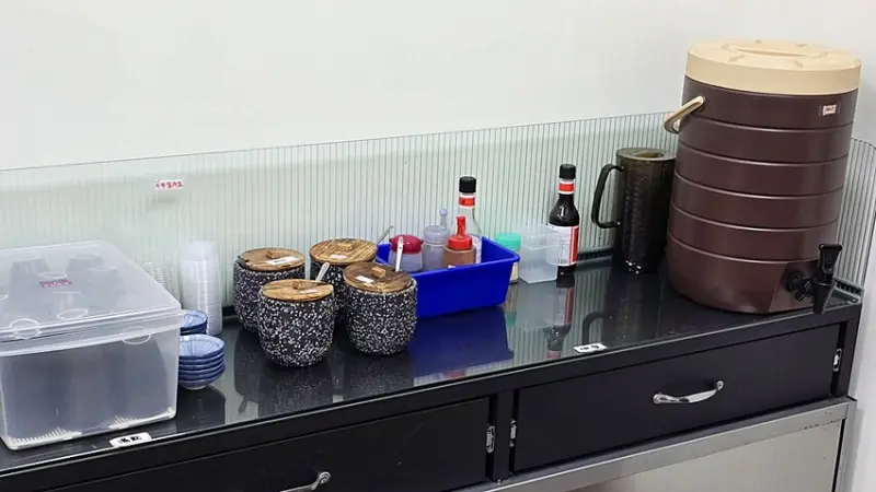 憶念點心堂的入口左邊是開放式廚房,透過玻璃櫥窗可以看到師傅正在製作料理的過程,還滿療癒的且廚房很乾淨讓人食的安心。