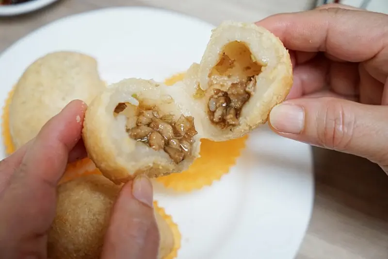 安南鹹水餃,外層香酥緊接是如同麻糬般的軟Q口感,加上鹹香的肉餡、層次相當豐富好吃,這可是我家姊妹的最愛~