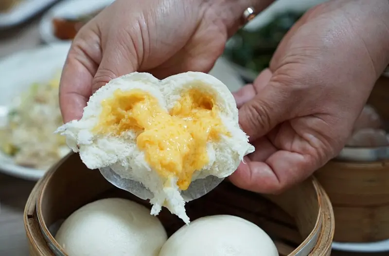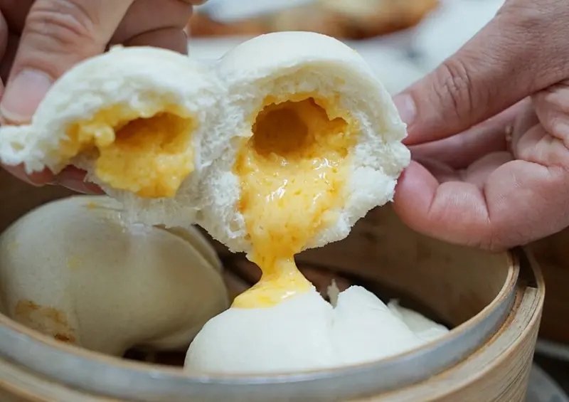 黃金流沙包最經典的就是撕開時的爆漿狀態,香氣四溢超誘人~
