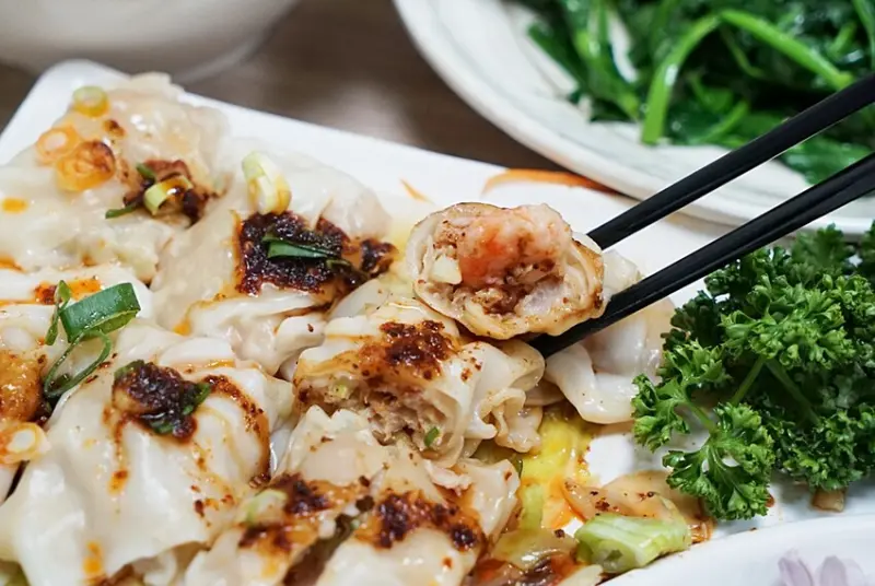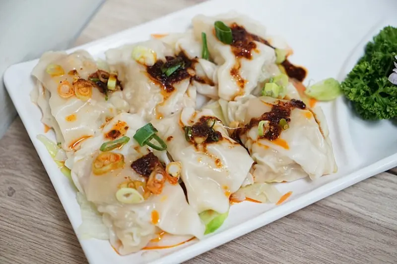 麻辣鮮蝦抄手,愛吃炒手的你這一道必點,尤其淋上店家自製麻辣醬更是一級棒!