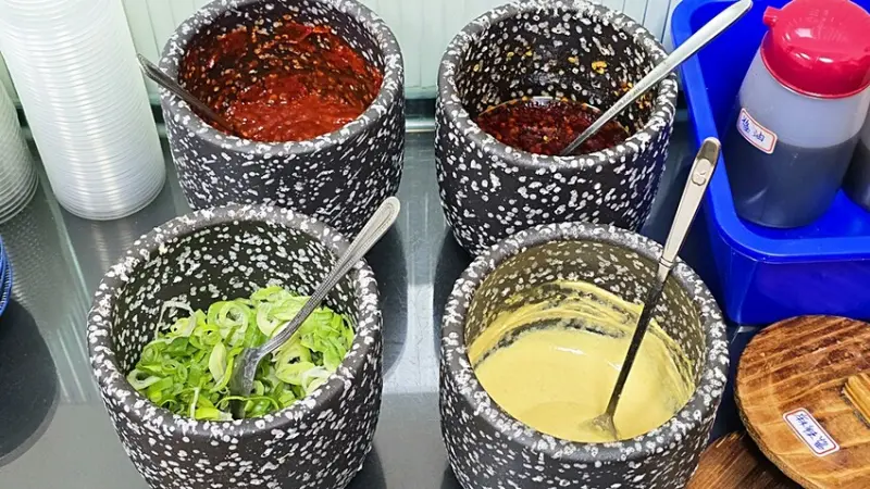醬料區的醬料還不少,但小涼最愛的就是師傅手作的麻辣醬,其他還有豆瓣醬、蔥末、黃芥末醬、醬油、醋等等,請大家斟酌拿取囉!