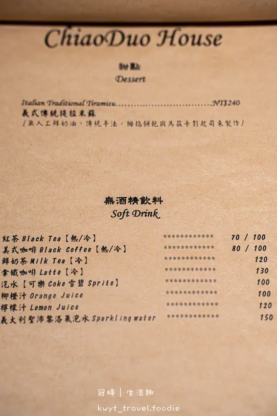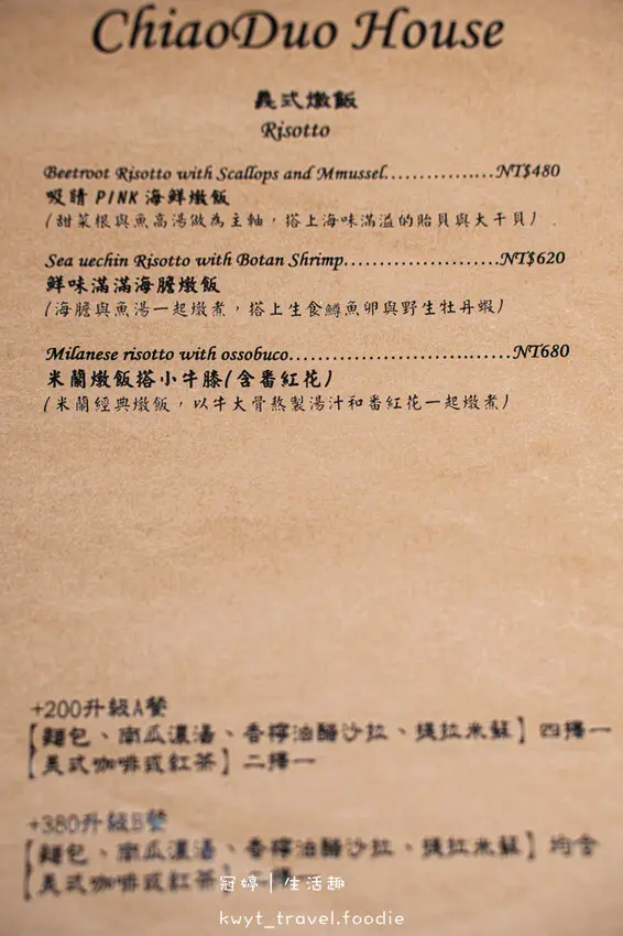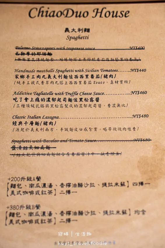 台北大安區義式餐廳_巧哚洋房菜單,攝於2025/03/06(四)