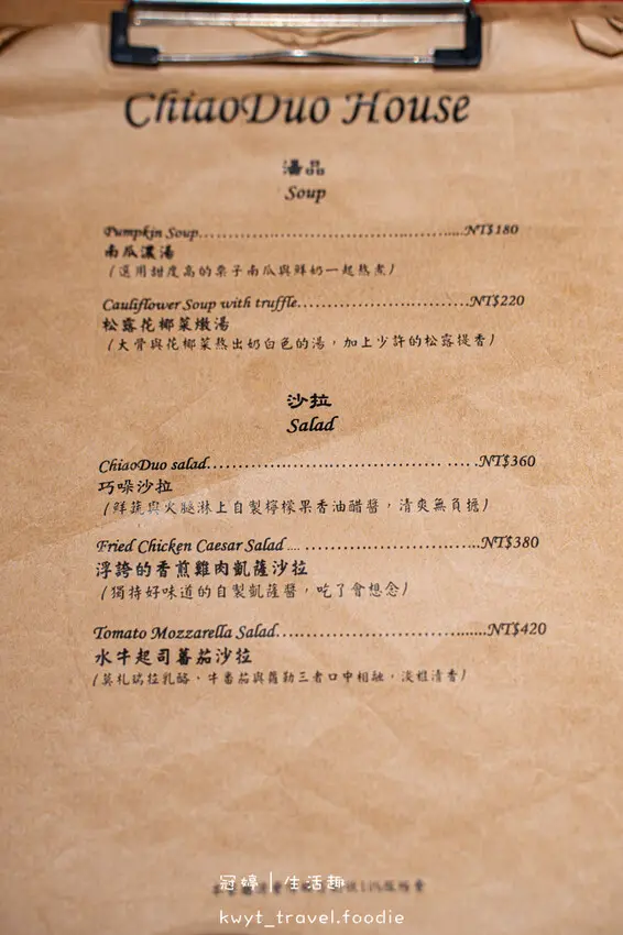 門口有擺放巧哚洋房菜單,方便路過的朋友們翻閱參考。