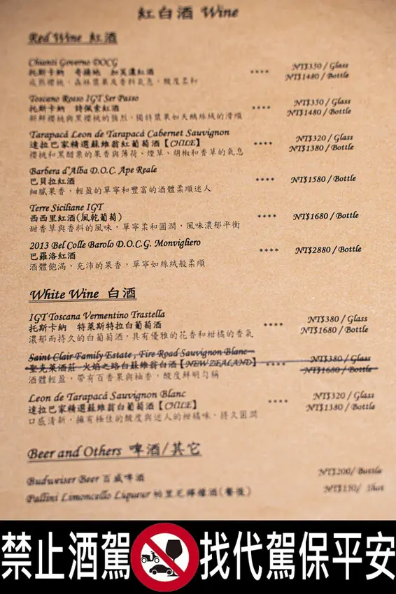 台北大安區義式餐廳_巧哚洋房酒單,攝於2025/03/06(四)