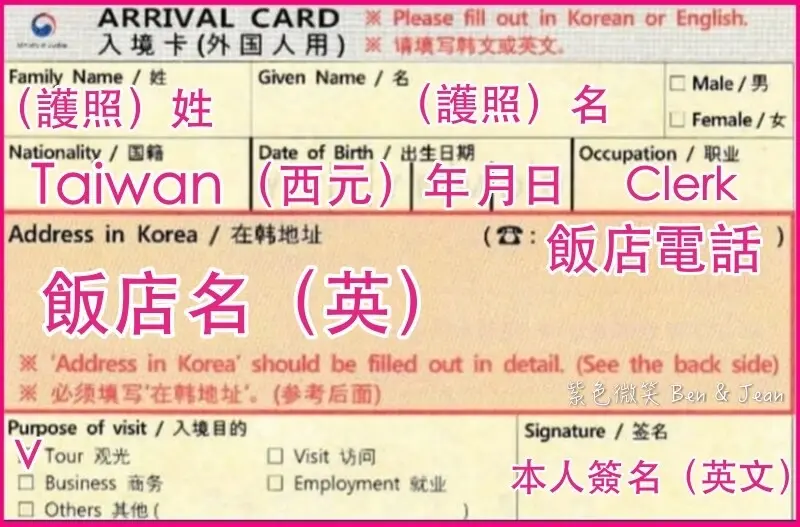 ▼韓國入境卡填寫方式