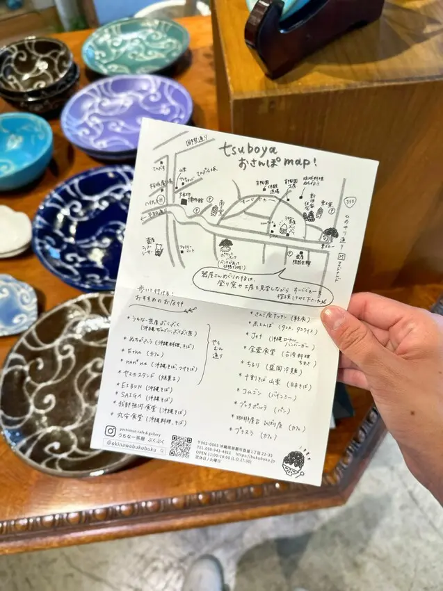 我們用餐到一半,有很多外國人來用餐,都點了沖繩傳統茶,蠻有趣的,下次有來沖繩,我也很推薦你可以品嚐看看,沖繩傳統茶,店家也很貼心,有做了一張小地圖,推薦一些附近不錯的店家,就放在入口處,有需要可以看看有沒有喔!