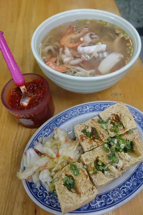 這家店就在熱鬧的連城路跟中山路二段的五角路口旁邊,車流量很大,大家開車經過的時候可能要稍微注意一下。我這次剛好在附近散步的時候看到這間新開的店就進來試試看。他們招牌的煎餃真的不用多說,超大片的麵衣皮吃起來酥脆到不行,裡面的肉餡又飽滿多汁,那個脆皮跟爆汁的雙重口感真的是一次滿足。加上店裡其他好吃的小菜跟滷味,最後再來一碗湯,就是超豐盛的一餐啦。看到店裡面滿滿的人潮,還有門口排隊外帶的客人,就知道「九初流心脆皮煎餃」的美味有多厲害了吧。