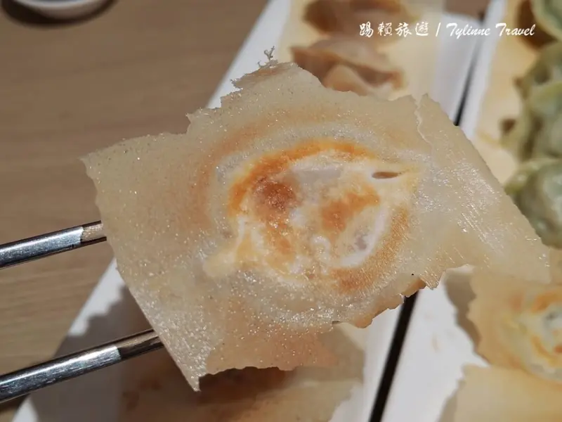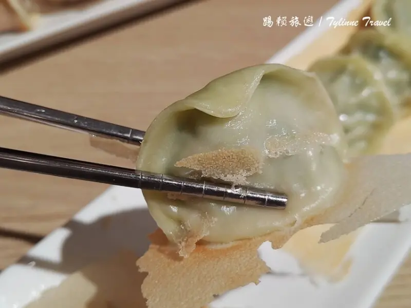 煎餃最吸引我的就是底部那一大片的麵衣皮,輕輕碰一下就可以聽到超級酥脆的聲音。