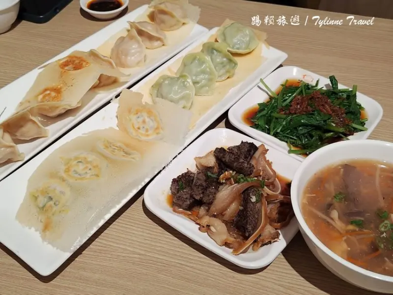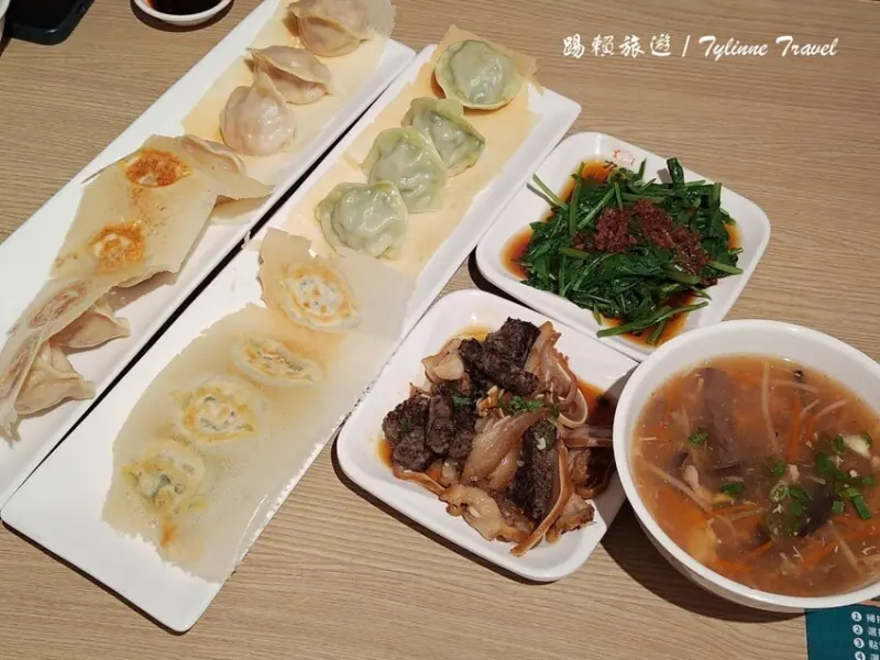 這次我主要就是為了煎餃來的,所以點了兩種口味,分別是「韓式泡菜煎餃」跟「韭菜鮮肉煎餃」,還搭配了一碗「酸辣湯」跟「空心菜」還有「馥郁滷味」。