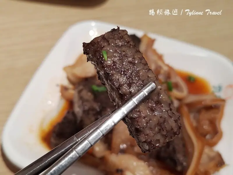 「馥郁滷味」選了滷米血糕跟滷豬耳」,一端上來就可以聞到淡淡的滷味香。那個滷米血糕吃起來很紮實,不會軟爛,吸飽滷汁之後味道特別香。